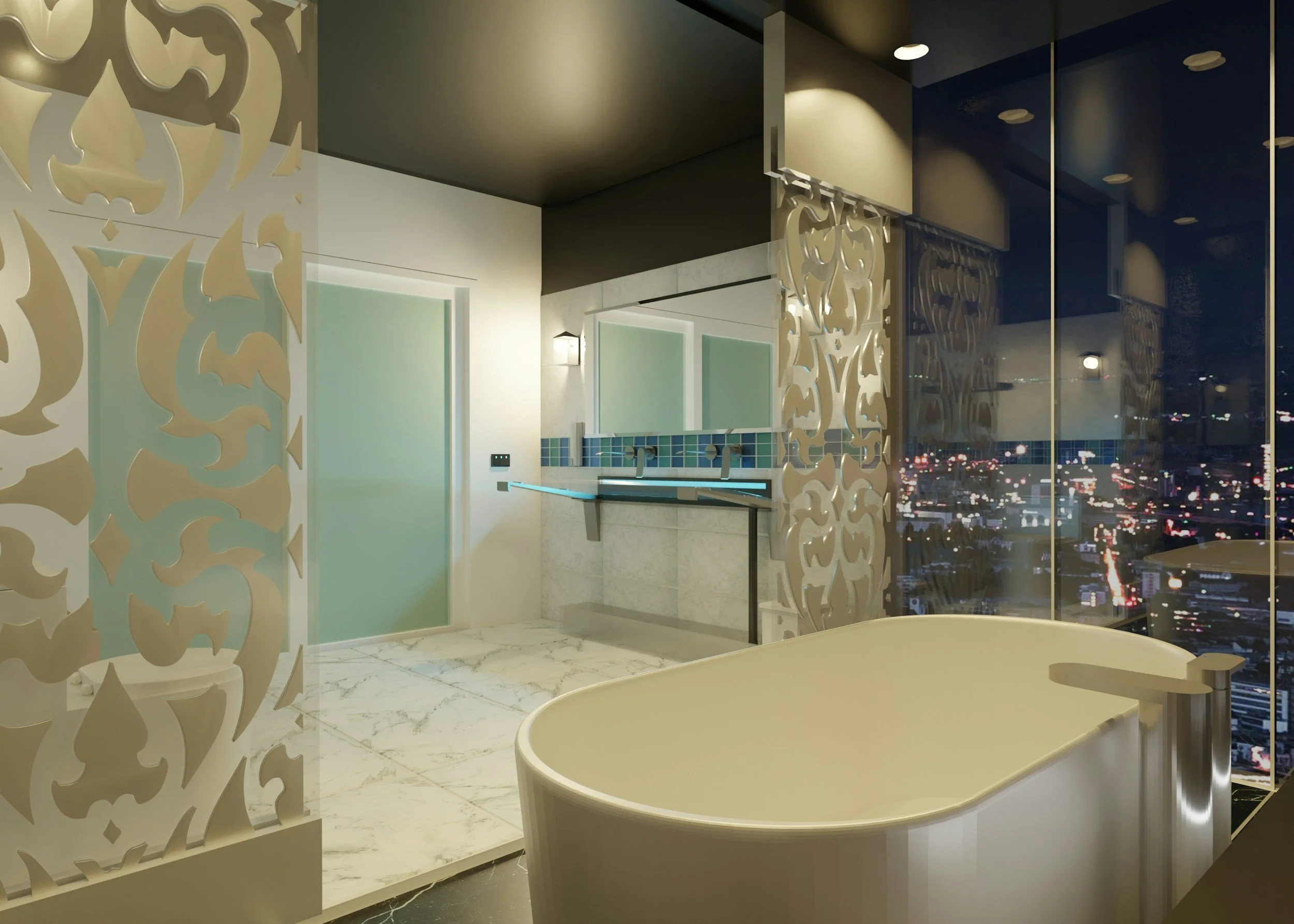 Custom tile patterns or niche details